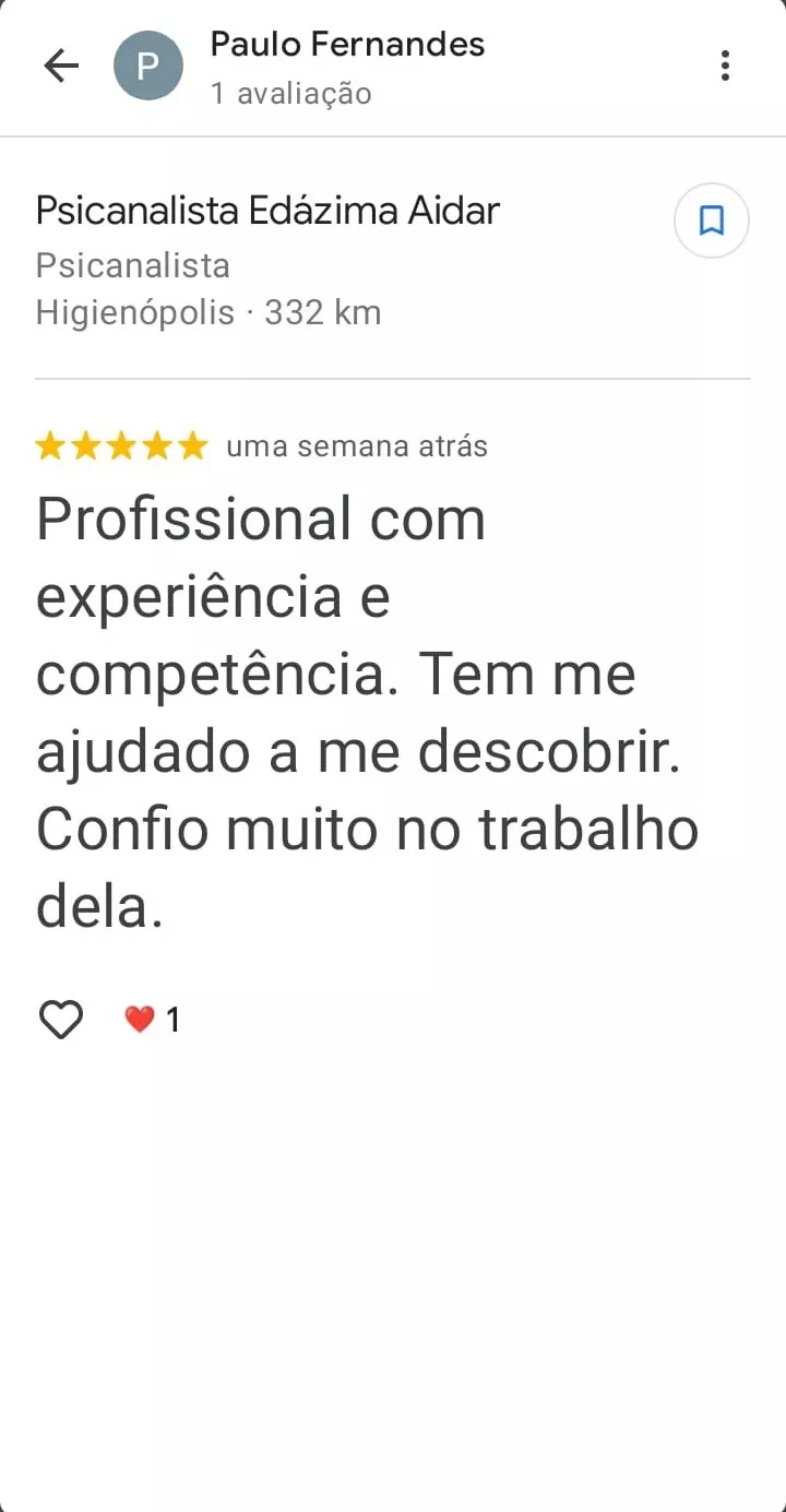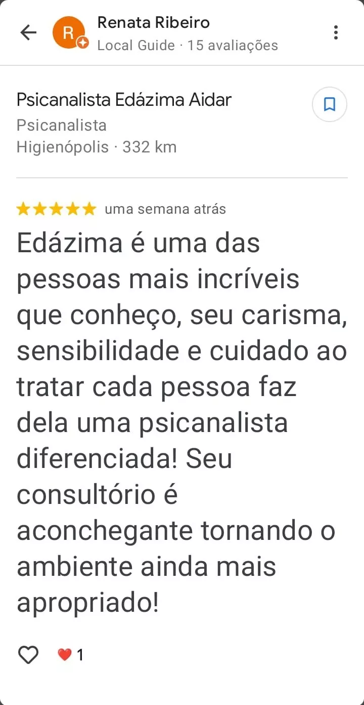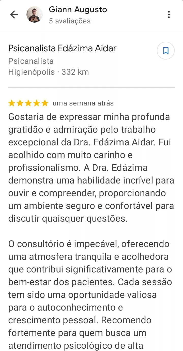 Prazer, eu sou Edázima Aidar, sou Psicóloga e Psicanalista com grande experiência na área.